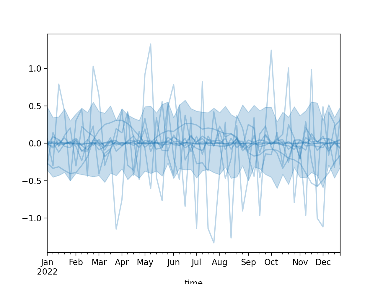 import numpy as np import pandas as pd import matplotlib.pyplot as plt from pymc_marketing.mmm import HSGP seed = sum(map(ord, "Change of covariance function")) rng = np.random.default_rng(seed) n = 52 X = np.arange(n) hsgp = HSGP.parameterize_from_data( X=X, cov_func="matern32", dims="time", ) dates = pd.date_range("2022-01-01", periods=n, freq="W-MON") coords = { "time": dates, } prior = hsgp.sample_prior(coords=coords, random_seed=rng) curve = prior["f"] hsgp.plot_curve(curve, random_seed=rng) plt.show()